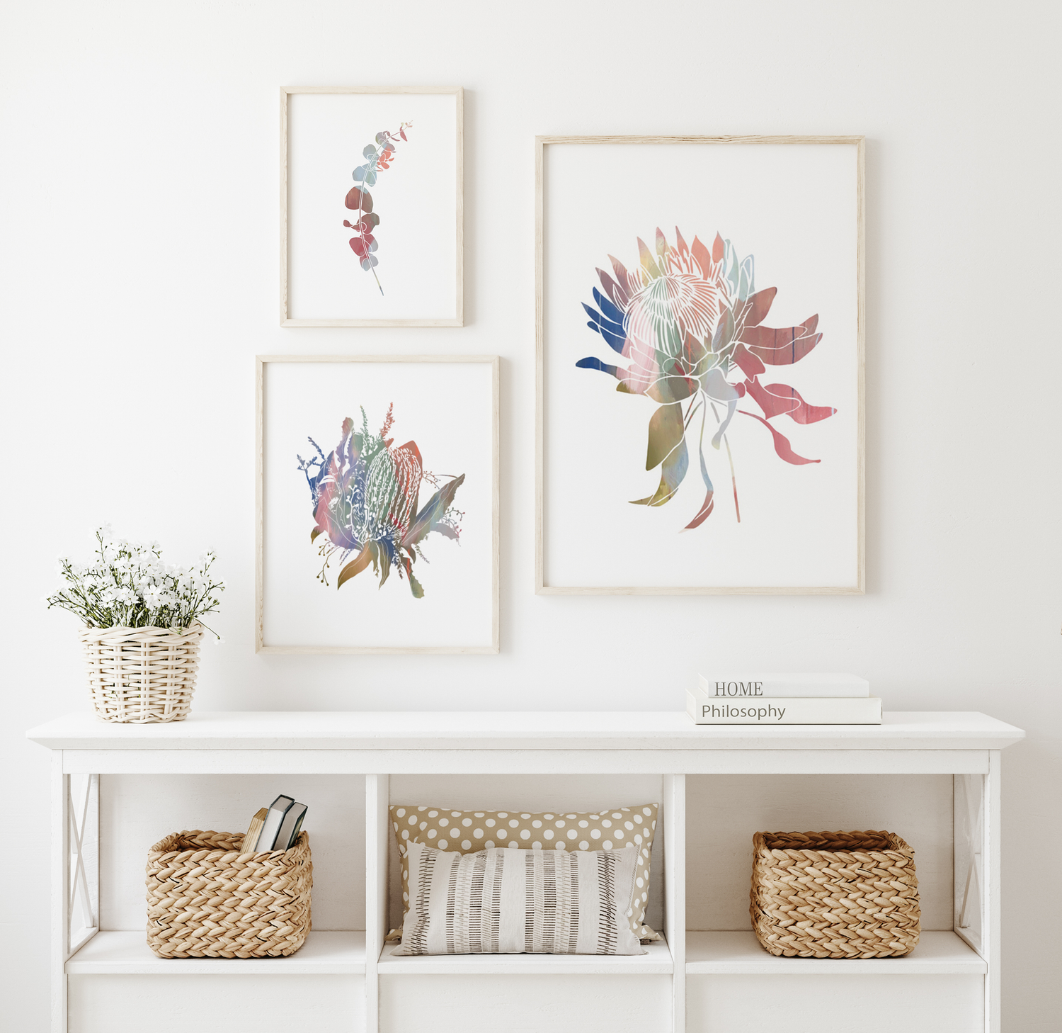 Shop floral and botanical wall art prints featuring Australian native flowers and plants.